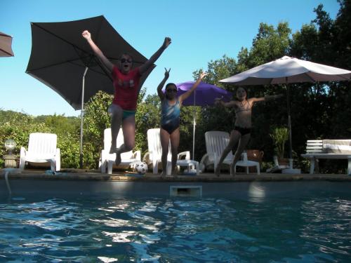Alors elle, je la bichonne chaque jour. J’aime qu’elle soit claire, limpide, irrésistible ! Dix mètres sur cinq, un côté pour jouer avec les petits, un autre bien profond pour les plongeurs. Chaises longues et parasols pour buller sans vergogne et savourer encore le paysage verdoyant et serein. Attention : interdit de pousser à l’eau. En tout cas, pas le premier jour. Ou alors pas tout habillé. Le mieux est encore de laisser le smartphone à l’abri dans le gîte.